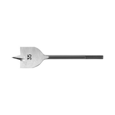 Сверло по дереву перовое ЛОМ, шестигранный хвостовик, 35×152 мм. Сверло по дереву перовое с шестигранным хвостовиком ЛОМ предназначено для совместного использования с дрелью. Сверло применяется для сверления отверстий в таких материалах, как: мягкие и твердые сорта древесины, фанере и гипсокартоном. Благодаря очерчивающему острию выходит ровное и цельное отверстие. Шестигранный хвостовик надежно фиксируется в патроне инструмента.