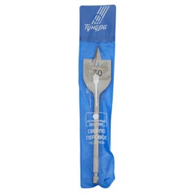 Сверло по дереву перовое ТУНДРА, шестигранный хвостовик, 30×152 мм. Сверло по дереву перовое с шестигранным хвостовиком ТУНДРА предназначено для совместного использования с дрелью. Сверло применяется для сверления отверстий в таких материалах, как: мягкие и твердые сорта древесины, фанере и гипсокартоном. Благодаря очерчивающему острию выходит ровное и цельное отверстие. Преимущество первого сверла заключается в выполнении отверстий различного диаметра, что повышает коэффициент производительности работы. Шестигранный хвостовик надежно фиксируется в патроне инструмента.