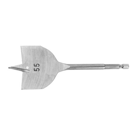 Сверло по дереву перовое ТУНДРА, шестигранный хвостовик, 55×152 мм. Сверло по дереву перовое с шестигранным хвостовиком ТУНДРА предназначено для совместного использования с дрелью. Сверло применяется для сверления отверстий в таких материалах, как: мягкие и твердые сорта древесины, фанере и гипсокартоном. Благодаря очерчивающему острию выходит ровное и цельное отверстие. Преимущество первого сверла заключается в выполнении отверстий различного диаметра, что повышает коэффициент производительности работы. Шестигранный хвостовик надежно фиксируется в патроне инструмента.