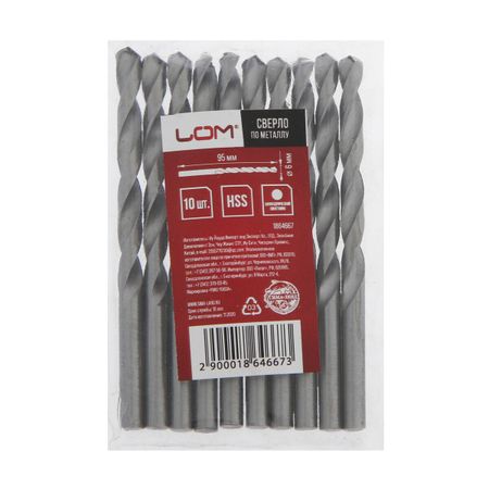 Сверло по металлу ЛОМ, HSS, цилиндрический хвостовик, 6×95 мм, 10 шт.. Сверло с цилиндрическим хвостовиком предназначено для использования с дрелью. Изделие применяется для создания сквозных отверстий в металле.