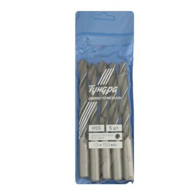 Сверло по металлу ТУНДРА, HSS, цилиндрический хвостовик, 13×150 мм, 5 шт.. Сверло с цилиндрическим хвостовиком предназначено для использования с дрелью. Изделие применяется для создания сквозных отверстий в металле. Цилиндрический хвостовик надежно фиксируется в патроне инструмента.