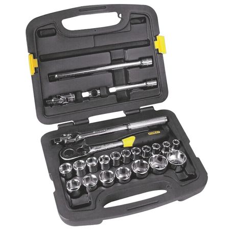 [T] Набор инструментов для торцевых головок Stanley Набор инструментов для авторемонта, ремонта машин, комбинированный инструмент, набор торцевых ключей с храповым механизмом, набор инструментов, ящик для инструментов, набор из 24 предметов, 1/2 дюйма 91