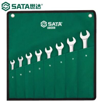 [T] SATA 08008 Набор ключей с трещоткой и фиксированной головкой. Открытый ключ для сливы. Набор инструментов. Отверстие в виде цветка сливы. Быстрый ключ двойного назначения. Полностью полированный, хром-ванадиевая сталь с высоким крутящим моментом, наб