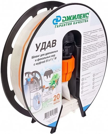 Гибкая магистраль Джилекс Шланг УДАВ 51х1 1/2 М поставляется на пластиковой катушке для удобства хранения. Кроме того, данное приспособление можно использовать при перекидывании шланга через высокие препятствия. Текстильный аксессуар подходит для решения множества задач, связанных с перемещением холодной воды.