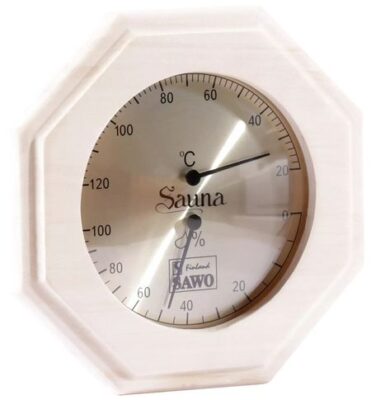 Термогигрометры финской марки SAWO серии 241 отличаются оигинальным дизайном, что делает прибор полноценным элементом декора в сауне. Оборудование легко устанавливается на стену (на пластиковом основании предусмотрено специальное отверстие). Внешняя панель из древесины имеет эстетический внешний вид.