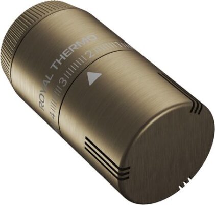 Дизайнерская термоголовка Royal Thermo (Роял Термо) Design Pro М30х1,5 (бронза) используется в системах жидкостного отопления помещений различного типа. Лаконичный внешний вид отлично дополняет большинство интерьерных решений. Пластиковое исполнение максимально упрощает настройку температуры.