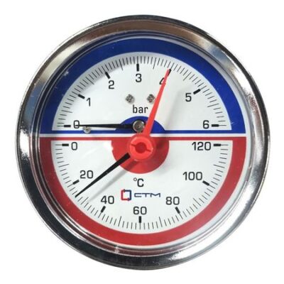Главная » Строительство и ремонт термоманометр СТМ горизонтальный аксиальный 1/2″ 6 бар Просмотров 11 Подключение: тыльное Давление: 0-6 бар Температура: до 120 град Резьба: 1/2″ НР Диаметр манометра: 80 мм Класс точности: 2,5 СТМ