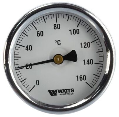 Термометр биметаллический с погружной гильзой Watts (Ваттс) F+R801 (T) 100/100 (1/2″,160″С) это прибор из группы контрольно-измерительных устройств, который служит для постоянного мониторинга за параметрами температуры в отоплении и горючем водоснабжении. Термометр может применяться в самых разных областях народного хозяйства.