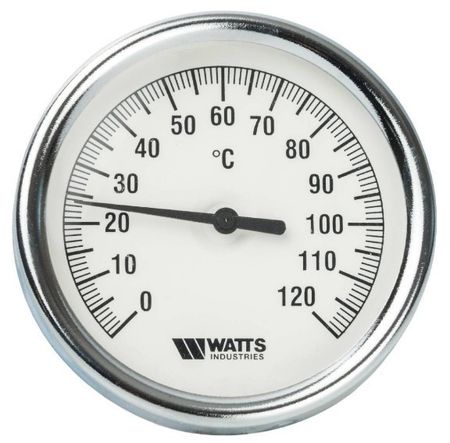 Термометр биметаллический с погружной гильзой Watts (Ваттс) F+R801 (T) 80/75 разработан для монтажа непосредственно в трубопровод отопительных систем или горячего водоснабжения. Корпус защищён от коррозии благодаря использованию никелированной стали, погружная гильза из качественной латуни.