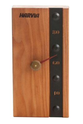 Термометр HARVIA (Харвиа) Legend SASPO104 изготовлен из предварительно термически обработанной осины, для придания ему устойчивости к контакту с перенасыщенным воздухом. Шкала прибора выполнена в виде металлической полосы, где функцию меток выполняют металлические заклепки.