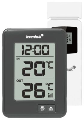 Levenhuk (Левенгук) Wezzer BASE L50 представляет собой эргономичный термометр с датчиком. Благодаря последнему обстоятельству с помощью такого термометра можно измерять температуру одновременно и в помещении, и за его пределами. Оба прибора в данном комплекте работают от батареек (приобретаются отдельно).