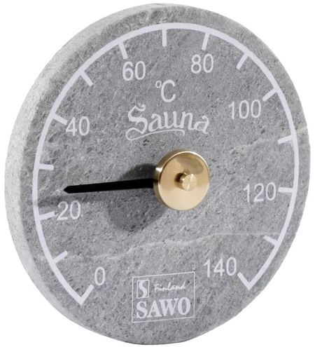 Термометр SAWO (САВО) 290-TR изготовлен из натурального природного камня. На корпус нанесён большой графичный циферблат, по которому можно определить актуальную температуру воздуха в парной. Устройство отличается простой установкой и устойчивостью к повышенной влажности. Благодаря стильному дизайну прибор легко впишется в интерьер.