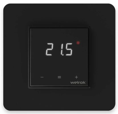Терморегулятор Welrok (Вэлрок) lis bk разработан для удобного управления водяными и электрическими теплыми полами. Модель изготовлена в тонком встраиваемом корпусе (декоративная рамка входит в комплект поставки). Температуру можно регулировать в диапазоне значений от +5 до +40 градусов. Цвет терморегулятора черный.