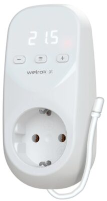 Терморегулятор Welrok (Вэлрок) pt разработан для контроля и регулировки температуры бытовых электрических обогревателей. Он изготовлен в компактном пластиковом корпусе белого цвета. В розетку на передней панели подключается соответствующий отопительный прибор, а на дисплее отображаются данные о температуре. Управление регулятором кнопочное.