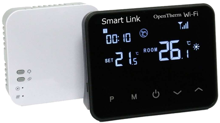 Baxi (Бакси) Smart Link это беспроводной термостат, предназначенный для управления работой как электрических отопительных котлов (серии Ampera Plus и AMPERA Pro), так и газовых, поддерживающих протокол OpenTherm. Термостат позволяет не просто регулировать температуру оборудования, но и программировать его работу на сутки или на неделю.