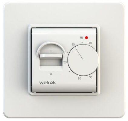 Терморегулятор Welrok (Вэлрок) mex это простой по своей конструкции термостат с механическим управлением и выключателем в виде тумблера. Данная модель может использоваться совместно с электрическими или водяными теплыми полами, для измерения температуры пола используется специальный выносной датчик в комплекте.