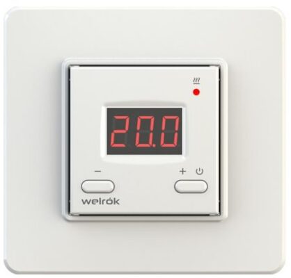 Терморегулятор Welrok (Вэлрок) vt предназначен для управления температурой инфракрасных греющих панелей и обогревателей мощностью не более 2000 Вт. Изделие не программируется, для настроек используются кнопки на панели и небольшой цифровой дисплей. Для экономии электроэнергии и для использования в ночное время экран снижает яркость в режиме ожидания.