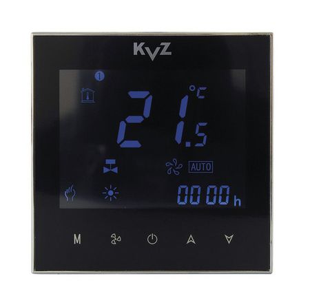 KVZ (КВЗ) KT-210/B это компактный и удобный в использовании термостат для внутрипольных конвекторов KVZ Vent. Модель исполнена в легком корпусе черного цвета и предназначена для установки в подрозетник. С помощью термостата можно программировать работу сразу нескольких вентиляторов в разных конвекторах.