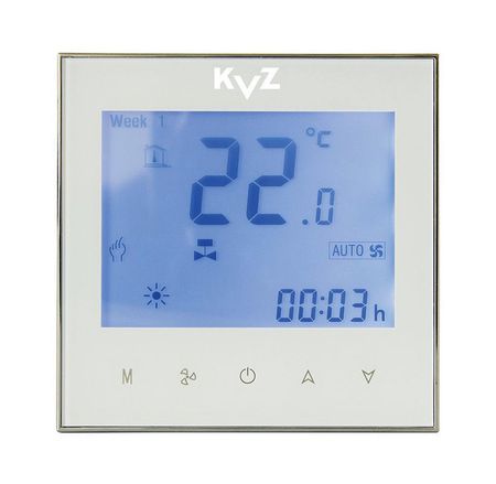 Высокочувствительный термостат KVZ (КВЗ) KT-210/W предназначен для управления вентиляторами внутрипольных конвекторов KVZ Vent. С одного устройства можно регулировать работу вентиляторов сразу в нескольких конвекторах. Такой термостат монтируется в стандартный подрозетник.