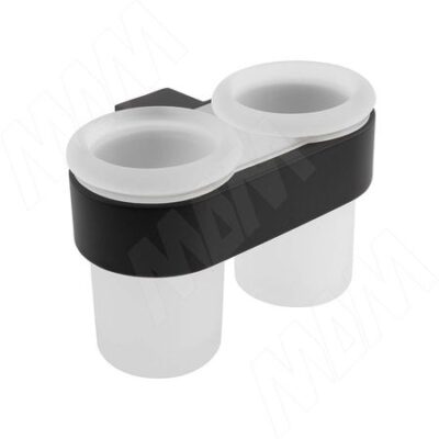 TOP Держатель настенный двойной с двумя стаканами для зубных щеток, черный матовый, стекло матовое (TOP.08.BLM)