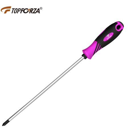 TOPFORZA 2SD-06200P2 крестовая отвертка S2 из легированной стали фиолетового и черного цвета, двухцветная противоскользящая отвертка TPR с сильным магнитом # 2×6,0x200 мм, 8 дюймов