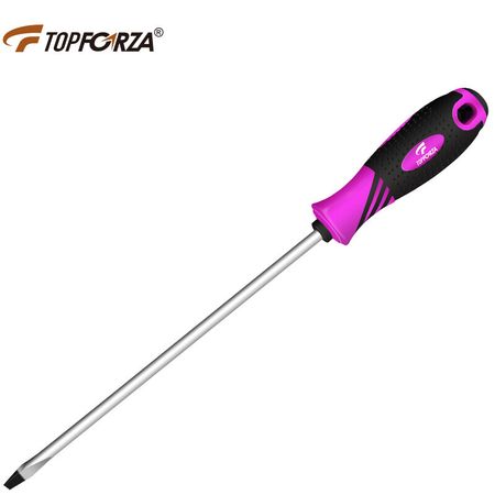 TOPFORZA 2SD-06200S6 Отвертка S2 из легированной стали фиолетового и черного цвета, двухцветная противоскользящая отвертка TPR с сильным магнитом — 6,0×200 мм, 8 дюймов