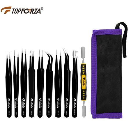 TOPFORZA TZ-4510 набор пинцетов из нержавеющей стали, заостренный локоть, пинцет с плоской головкой, набор инструментов, 10 шт.