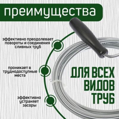 Трос сантехнический ZEIN engr, оцинкованный, с ручкой, d=5 мм, L=3 м. Трос сантехнический ZEIN engr — оцинкованный инструмент для прочистки труб, оснащенный удобной ручкой для легкости в использовании. Разработан трос для эффективного удаления засоров в трубопроводах, обладает высокой прочностью и долговечностью, что делает его подходящим как для домашнего, так и для профессионального использования.