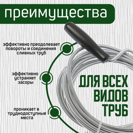 Трос сантехнический ZEIN engr, оцинкованный, с ручкой, d=5 мм, L=4 м. Трос сантехнический ZEIN engr — оцинкованный инструмент для прочистки труб, оснащенный удобной ручкой для легкости в использовании. Разработан трос для эффективного удаления засоров в трубопроводах, обладает высокой прочностью и долговечностью, что делает его подходящим как для домашнего, так и для профессионального использования.