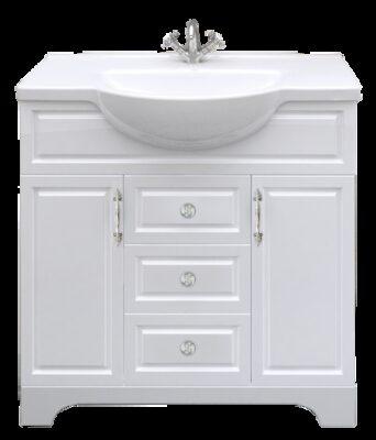 Тумба под раковину 1MarKa Прованс 85Н белого цвета (У57586) с двумя распашными дверцами и тремя выдвижными ящиками сочетает в себе элегантность и практичность, она позволит удобно разместить необходимые ванные принадлежности. Тумба предназначена для использования в помещениях с повышенной влажностью и отлично впишется в интерьер любой ванной комнаты.