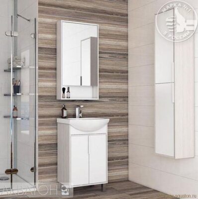 Коллекция РИКО – это простые функциональные формы, понятный дизайн и комфорт, доступные каждому. Белоснежный цвет цвет фасадов в сочетании со вставками и боковыми стенками цвета «Ясень фабрик» придадут вашей ванной комнате ощущение свежести, чистоты и уюта. Благодаря современным лаконичным белым ручкам на тумбе и отсутствию лицевой фурнитуры на зеркальном шкафчике коллекция универсальна и гармонично впишется в любую ванную комнату.
