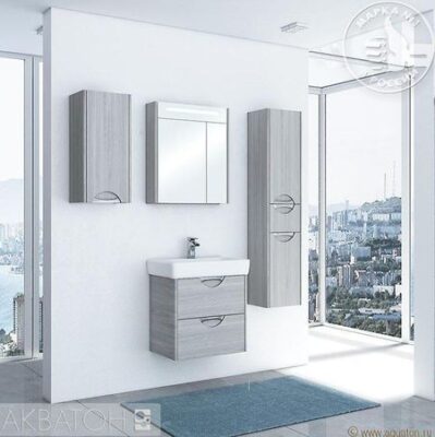 – фасады: МДФ в пленке с фрезеровкой под ручки – корпус: МДФ в пленке (боковые стенки) и влагостойкая ЛДСП – два ящика плавного выдвижения и закрывания – дополнительно предусмотрено нижнее подключение труб водоснабжения и канализации – два варианта установки: подвесной и напольный