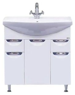 Орхидея – вместительный комплект мебели с размерами 75 см. Для хранения вещей в ванной комнате предназначены: