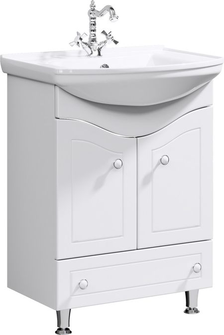 Напольная тумба AQWELLA FRANCHESCA 65 под керамический умывальник Стиль производства завода «KIROVIT», с двумя дверцами и нижним ящиком для хранения мелочей.