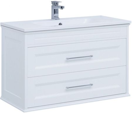 Тумба Aquanet Бостон М 100 белого цвета интересна внешне. Фрезеровка по белоснежным матовым фасадам и по боковым ее частям придает внешнему виду изделия шириной 100 см достойный и благородный вид, свойственный классике. Но утонченные ручки производства известной турецкой фирмы System, словно ниточки поблескивающие на фасадах, визуальная легкость изделия напоминает о модерне. Тумба с двумя выдвижными ящиками, оборудованными доводчиками производства компании Hettich, вмещает огромное количество полезных вещей. В верхнем ящике предусмотрено три отделения, что делает его пространство более удобным для использования: все вещи будут на своих местах. Нижний ящик просторный и в него можно поставить многочисленные шампуни, гели, муссы, маски, кремы и другие емкости.