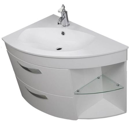 Тумба в ванную комнату De Aqua Трио Люкс 80 L (цвет -белый, фурнитура — хром) словно скользнувшая по стене и застывшая на ней волна, сглаживает угол помещения ванной комнаты, извлекая из него максимум функциональных возможностей. Фигурные ящички, выкатывающиеся на доводчиках, способны скрыть все необходимые в ванной комнаты умывальные принадлежности.
