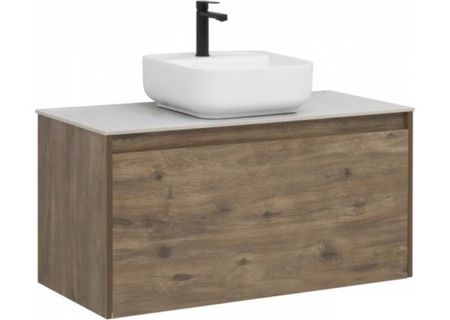 Тумба под раковину Aquanet Nova Lite 100 из влагостойкой ламинированной древесно-стружечной плиты в изысканном цвете «дуб рустикальный» имеет достойный вид. Фактура натурального дерева выглядит благородно, а подвесной монтаж придает визуальную легкость тумбе шириной 100 см. Она оборудована одним ящиком, при открывании которого обнаруживается еще один небольшой для мелочей. Фасад выполнен с декоративной интегрированной ручкой, не имеющей острых краев и внутренних углов, что обеспечивает удобство в эксплуатации и легкий уход за мебелью. Ящики комплектуются направляющими немецкого производства Hettich Quadro, оснащенными доводчиками. Для комплектации тумбы можно выбрать: либо неглубокую стильную встраиваемую керамическую раковину «Латина», либо столешницу, в которой уже предусмотрено отверстие для установки накладной раковины.