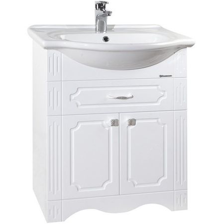 Элегантная тумба станет отличным функциональным решением для Вашей ванной комнаты. Прекрасно дополнит интерьер и подарит комфорт и уют. Изготовлена из влагостойких МДФ/ДСП с четырехслойным лаковым покрытием (Италия). Материалы устойчивы к повышенной влажности, перепадам температур, развитию грибков и микроорганизмов. Две распашные дверцы с доводчиками для плавного и бесшумного закрывания. Вместительный верхний ящик с механизмом полного выдвижения. Волнообразный фигурный цоколь (съемный). Монтаж: напольный.