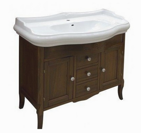 Kerasan Retro 734740 Тумба напольная, под раковину 105001/04, размер 100х55х76 мм. С двумя распашными дверцами и тремя выдвижными ящичками. Раковина в комплект не входит. Цв. орех.