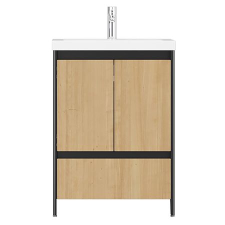 Тумба под раковину Монтаж: напольный Размер: 60 x 45 x 85.1 см Двери распашные: 2 Полка Выдвижной органайзер Ящики выдвижные: 1 Покрытие корпуса: пленка (экомембрана) Покрытие фасада: hpl пластик Материал: МДФ Форма: прямоугольная Цвет: черный матовый/дерево