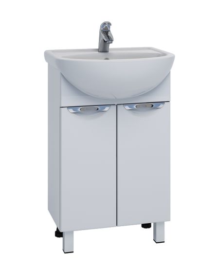2 дверцы; 1 полка ЛДСП; ручка врезная металлическая хромированная; опоры квадратные регулируемые.
