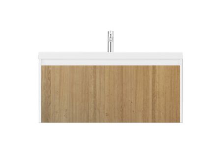 Тумба под раковину Монтаж: подвесной Размер: 99.1 x 44,3 x 44 см Ящики выдвижные: 1 Выдвижной органайзер Покрытие корпуса: пленка матовая Покрытие фасада: hpl пластик Материал: МДФ Форма: прямоугольная Цвет: белый/дерево Комплект крепежа для крепления к стене