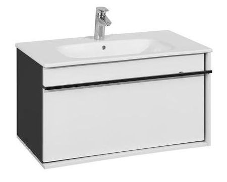 Четкая геометрия линий, сдержанность и широкий функционал три определения, которые лучше всего описывают коллекцию Aneto.Фасад модуля Aneto размера 800 мм выполнен из MDF, окрашенной в белоснежный глянец, а корпус и левая боковая стенка из влагостойкой ламинированной плиты в черном цвете.За фасадом находится небольшой внутренний ящик, открывающийся с помощью системы push-to-open и идеально подходящий для хранения небольших мелочей.Вместительный внешний ящик позволит разместить более крупные предметы.Тонкая и изящная ручка в черном матовом цвете подчеркивает графичность дизайна коллекции и может использоваться как полотенцедержатель.Модуль комплектуется керамической раковиной Roca Victoria-N.