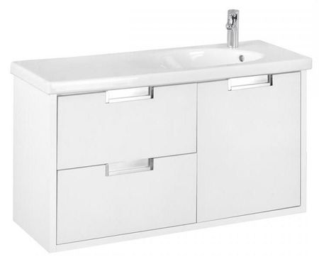 Тумба для раковины Etna в современном стиле от испанского бренда Roca, выполненная из влагостойкой высококачественной ЛДСП и МДФ с ящиками и распашной дверцей с доводчиками.