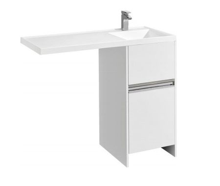 Набор: Тумба-умывальник Лондри 40/Раковина Лондри 105 бел. Тумба Лондри под стиральную машину выполнена из влагостойкой ламинированной плиты и окрашена в белоснежный цвет с высокой степенью глянца полиэфирной краской ультрафиолетового отверждения. Данный способ окрашивания обеспечивает изделию привлекательный внешний вид, а также износостойкость и долговечность. Верхний ящик открывается с помощью системы push-to-open, а нижний – за изящную удобную профильную хромированную ручку. Над ручкой установлена вставка из влагостойкой ламинированной плиты благородного цвета дуб наварра. Ящики выдерживают нагрузку до 25 кг. Тумба установлена на регулируемые опоры, которые находятся за цоколем. Тумба комплектуется раковиной Лондри 105 из прочного литого мрамора, который устойчив к воздействию химических средств. Широкое крыло раковины обеспечивает ванную комнату дополнительным функциональным пространством. Дополнительно к тумбе можно приобрести шкаф-колонну Лондри и зеркало c LED-подсветкой Соул 100.