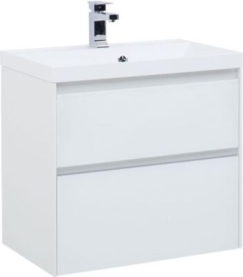 Тумба: Aquanet Гласс 70, цвет белый, ящики цвета Дуб сонома, 2 выдвижных ящика (206700)