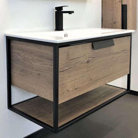 Тумба с раковиной Comfortу Бонн-90, подвесная, дуб темный, раковина Quadro 90 белая, 00-00003466