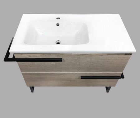Тумба с раковиной Comfortу Дюссельдорф 90, напольная, дуб дымчатый, раковина Comfortу 90 белая, 9090EL