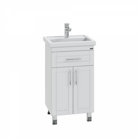 Тумба СаНта Дублин 50 223002 напольная+Умывальник "Фостер 50" , цвет белый (1 ящ.) Тумба для современной раковиной из санфаянса. Корпус изделия выполнен из влагостойкого ЛДСП, фасад из МДФ. Фасад мебели покрыт глянцевой ПВХ плёнкой. Большие центральные двери предоставляют максимальный доступ к подключению коммуникаций.