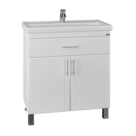 Тумба под раковину СаНта Дублин 80 223005 напольная+Умывальник "Фостер 80" , цвет белый (1 ящ.) Корпус и фасад изделия выполнены из влагостойкого из МДФ и покрыты глянцевой ПВХ-пленкой. В этой модели встроены два выдвижных ящика. В верхнем ящике организован доступ к подключению коммуникаций.